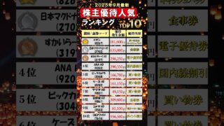 株 保存版|株主優待ランキングTOP10【発生金額と内容まとめ】2025年9月版 2025年9月最新版の株主優待ランキングTOP10を**銘柄名/コード/優待発生金額(概算)/優待内容(一言)**で一気に確認できます【対象銘柄】1位 イオン 8267|キャッシュバック系2位 日本マクドナルドHD 2702|食事優待券3位... 2026.03.18 株