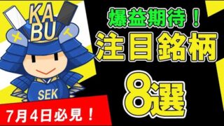 株 株式投資 爆益期待!7月4日用注目銘柄! SEKの株TV ====================『勝株式 株の最短攻略法』の詳細はこちら↓=====================================SEK事務局問い合わせ先以下アドレスまでご連絡ください。info@sek-kabu.... 2026.03.19 株