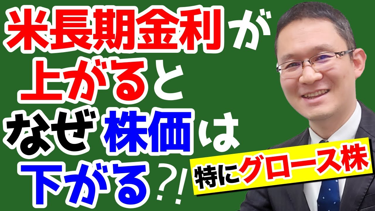 米長期金利が上昇すると株価は下がるといわれます。特に成長株は長期金利上昇の影響が大きく株価は下がります。長期金利の上昇が株価に与える影響を解説します。