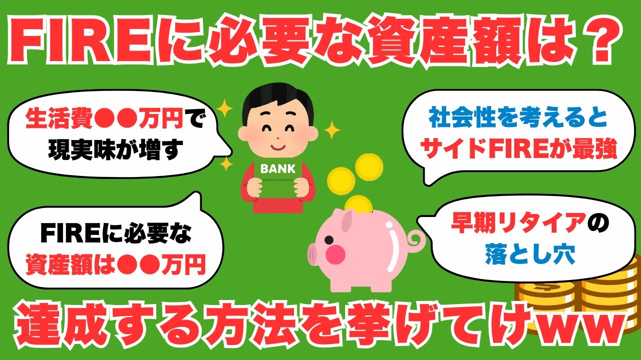スレ主とスレ民たちが、FIREに必要な金額や生活費削減の工夫、投資方法、副業、モチベ維持の秘訣まで本音で語ります。