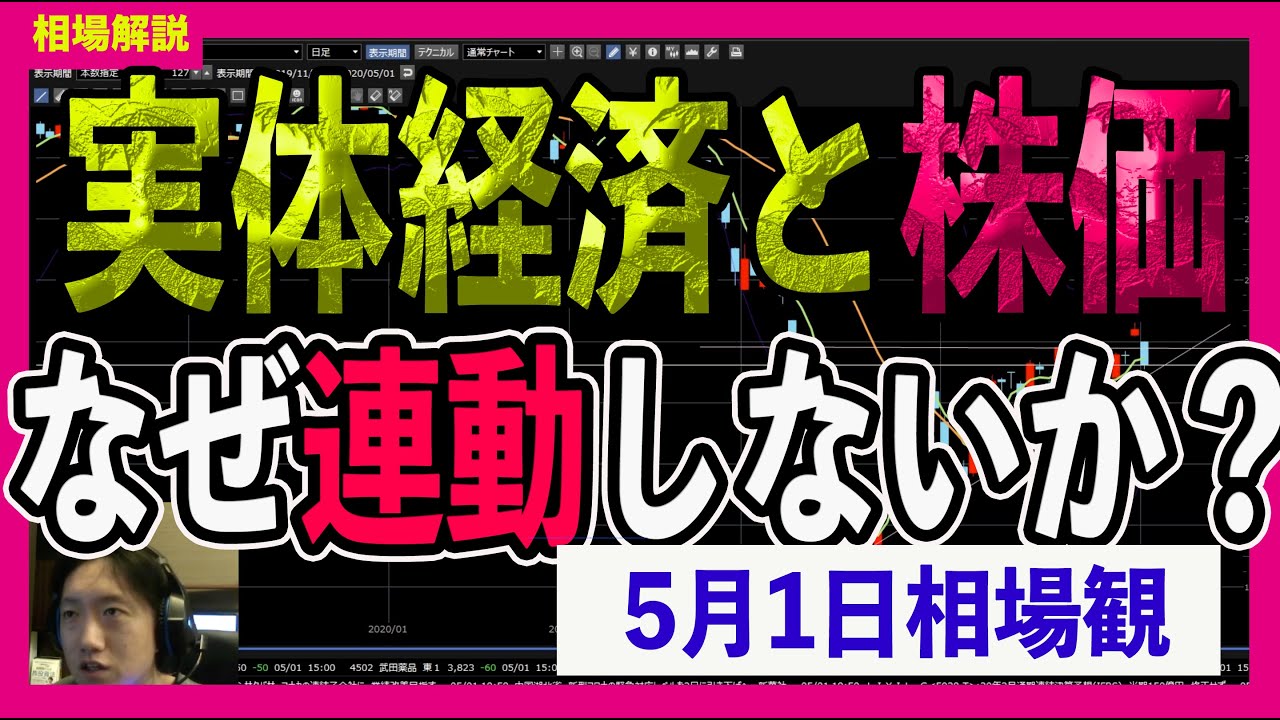 【5/1相場観】日経平均マイナス574円、前日の窓空きを埋めるように終了。実体経済と株価の離れを考察〈セルインメイは?〉