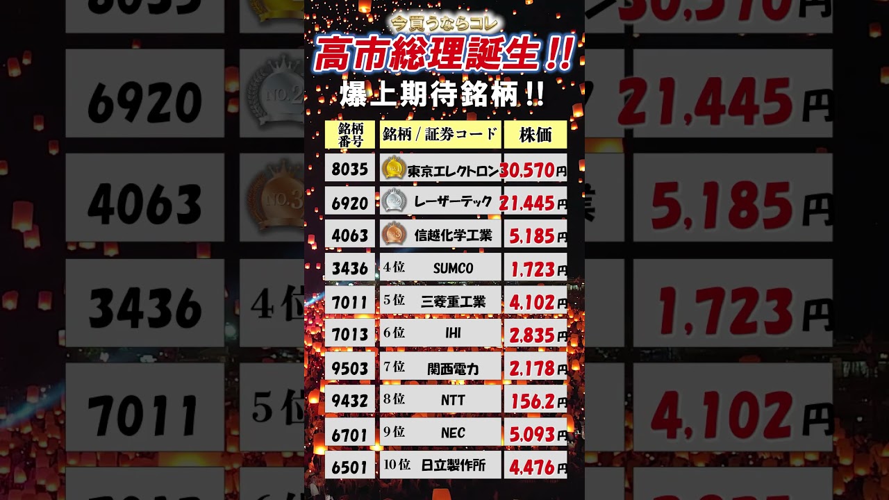 #日本株 #高市総理 #高市内閣 #政策銘柄 #半導体 #防衛株 #原子力 #電力株 #通信株 #インフラ #投資 #株式投資