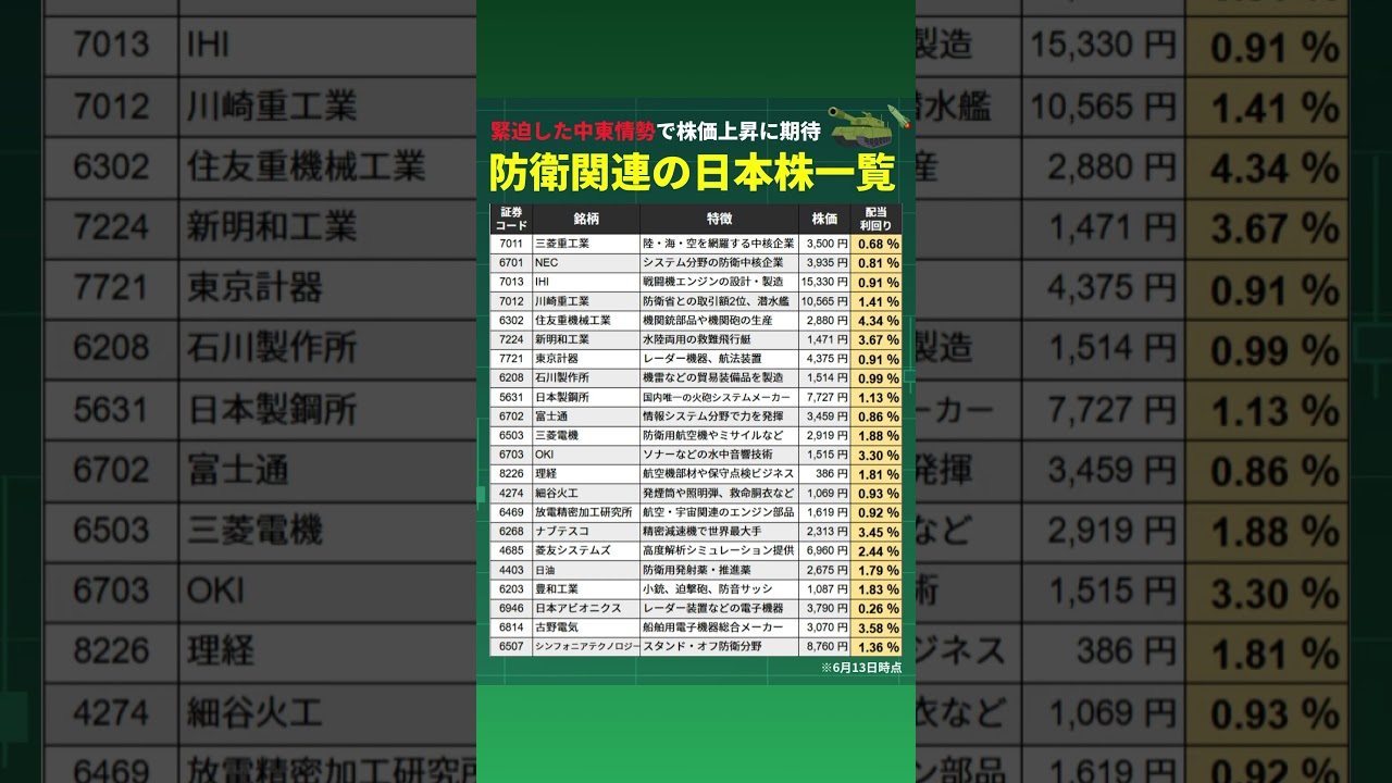 【緊迫した中東情勢】防衛関連の日本株一覧 株 X Facebook はてブ Pocket LINE コピー 2025.11.20 この動画について URL https://www.youtube.com/watch?v=0RRQfyDoUMI 動画ID 0RRQfyDoUMI 投稿者 ためかぶ 再生時間 00:11