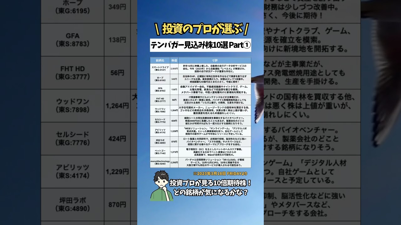 【投資家が選ぶ!】10倍株(テンバガー)期待株10選Part① #shorts #short #投資 #日本株 #高配当株 #株主優待 #配当金 #資産運用 #テンバガー #10倍株