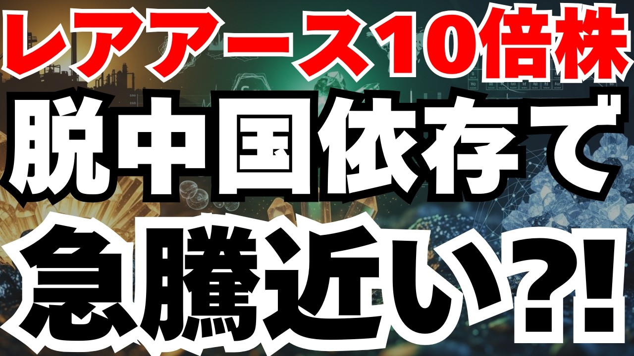 【動画概要】レアアース関連株が株価10倍のテンバガーを狙える歴史的転換点が到来!2030年に国内だけで10000トンの需要が見込まれる一方、供給能力は4900トンと5100トンもの巨大ギャップが発生。中国の輸出規制リスクと脱中国依存の国家戦略により、信越化学・DOWAホールディングス・TDKの3銘柄に1000億円規模の政府支援と構造的追い風が吹く絶好の投資機会。