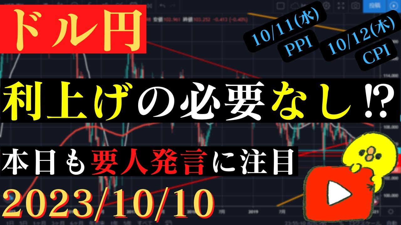 【ドル円】長期金利急落でドル円も下落‼本日も要人発言多数あり🐥2023/10/10🐥
