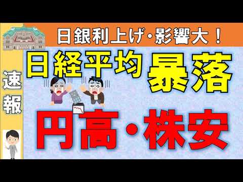 【速報】日銀利上げ!日経平均暴落・円高・株価暴落!ブラックマンデー以来の下げ幅!