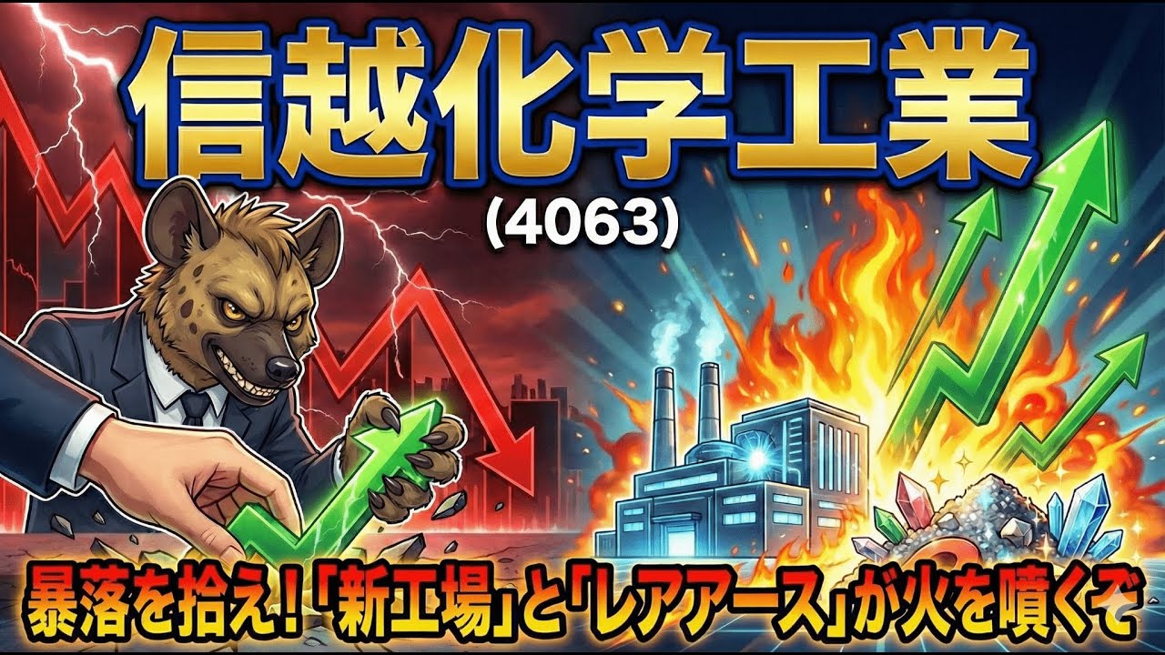 信越化学工業(4063)が決算発表後に大暴落!市場は「塩ビ減益」と「大規模売り出し(PO)」に絶望していますが、実はここが歴史的な買い場です。 なぜなら、塩ビの苦戦は織り込み済みであり、会社は既に「値上げ」へ転換。さらにAI半導体を牽引する電子材料事業、中国リスクを支配する「レアアース精製」の独占価値、2026年4月稼働の伊勢崎新工場と、成長シナリオは無傷だからです。 需給悪化は一時的。1,000億円の即時自社株買いという「解毒剤」も用意されています。暴落に震えるな。ハイエナ流・逆張り投資戦略で、王者の復活を骨までしゃぶり尽くせ!