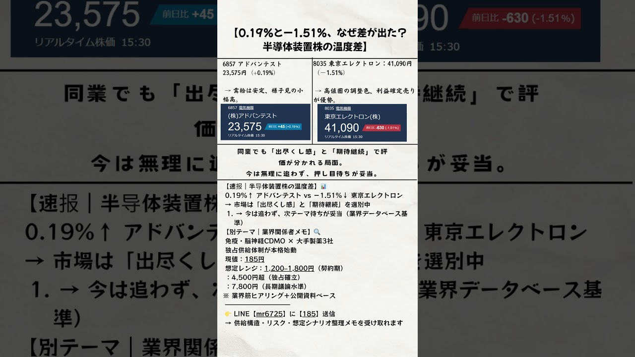 #半導体株 #半導体装置 #アドバンテスト #東京エレクトロン #日本株 #株式投資 #日本株初心者 #株価 分析 #資金の流れ #shorts