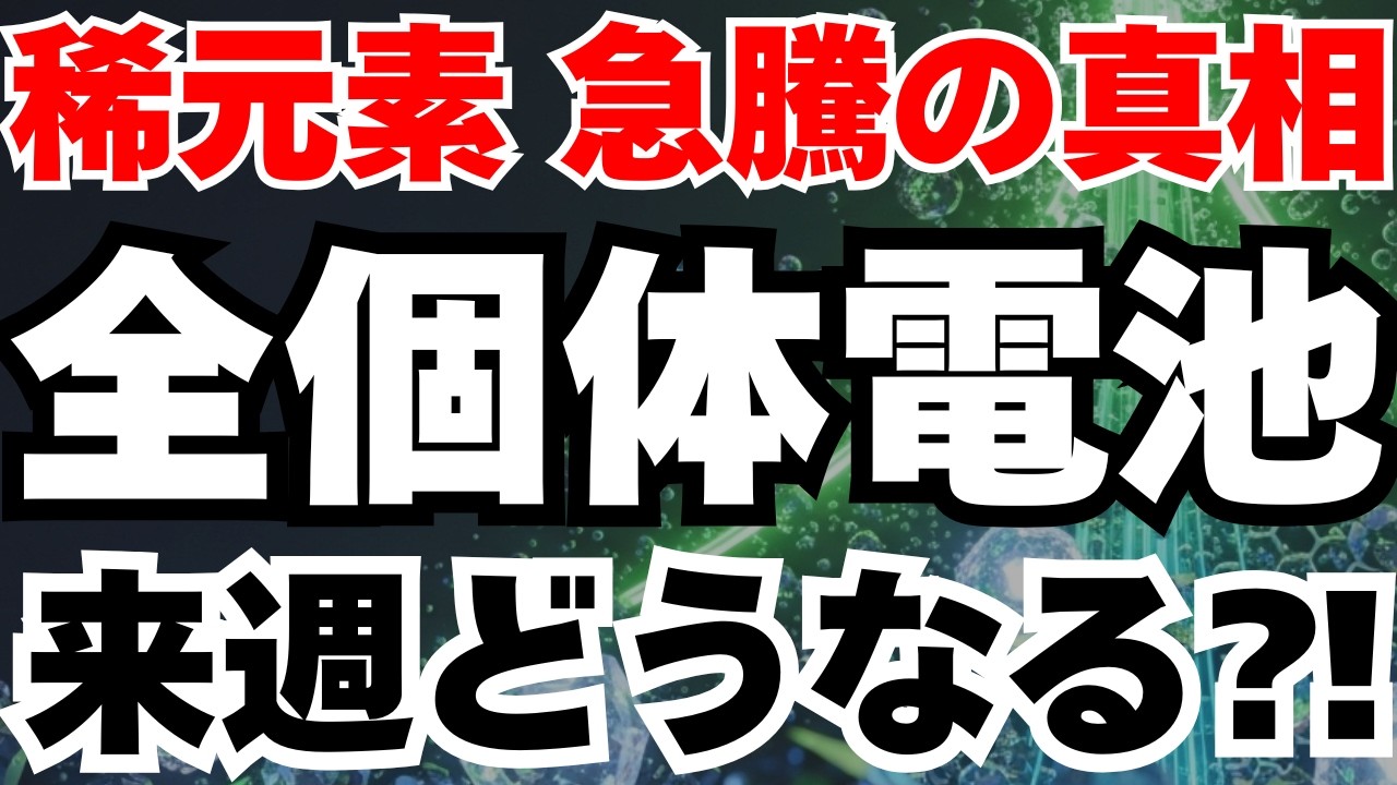 【動画概要】2026年1月23日、第一稀元素化学工業(4082)が前日比16%超の衝撃的急騰を記録。全固体電池に必須のジルコニウムで世界シェア50%超を握る同社が、ドーナツ・ラボの5分フル充電技術発表を受けて本格覚醒。前日の仕掛け的売り崩しを一気に巻き返し、連結経常利益を2億円から12億円へ6倍上方修正した実力が再評価される展開に。