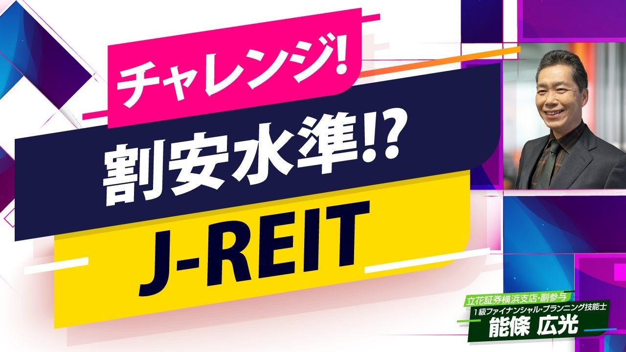 1級ファイナンシャル・プランニング技能士が解説!今、割安水準にあると思われる不動産投資信託「J-REIT」を資産運用に取り入れてみませんか?J-REITは安定した分配金利回りが魅力です。証券市場に上場しており、少額から気軽に売買ができます。実物不動産投資の知識がなくても専門家が運用しますので、手間がかかりません。無理のない範囲で少額から始めると良いでしょう。J-REITの具体的な銘柄をはじめ、仕組みや特徴、投資の際の注意点などをお話させていただきます。