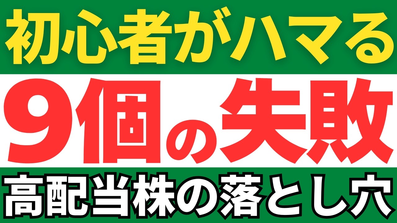 この動画では、高配当株投資で初心者がやりがちな9つの失敗パターンを徹底解説します。
