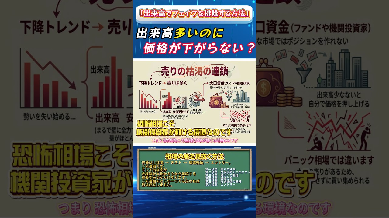 「出来高でフェイクを排除する方法」出来高多いのに価格が下がらない?#投資 #初心者 #株式投資 #日本株 #テクニカル分析 #チャート分析 #ローソク足分析 #初心者向け #出来高