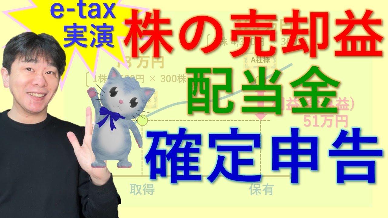 株を売却した場合・配当金を受け取った場合の確定申告のやり方、確定申告書等作成コーナー(e-tax)で実演、譲渡所得と配当所得、総合課税と分離課税、配当控除を解説【静岡県三島市の税理士】