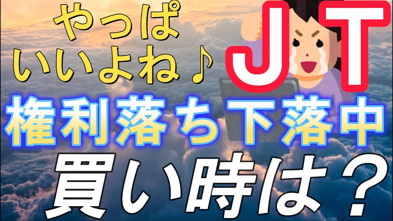 株こんにちは、フーです。今回は権利落ち後に拾いたい株価下落中の高配当株JTの買い時を考察紹介しています。