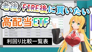 株 老後とFIRE後の不労所得!! 紙ペラ1枚 高配当ETFまとめ解説 高配当株/債券ETFの利回りを一覧表にしてみました比較のために値上がり益狙いのVIG、VT、VOO、QQQも載せています私はまだ若いつもりなので、高配当株/債券ETF購入に積極的ではなく、値上がり益狙いを重視していますですが将来購入するでし... 2025.12.10 株