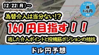 株 【ドル円】日本政府は円安推移を容認!?通り過ぎた絶好の介入タイミング。投機筋のポジション拮抗で介入の根拠が乏しい?さらに強い円安に要警戒!!【週間ドル円予想 2025/12/22~】 00:00 冒頭と予想00:33 振り返り01:26 イベント02:36 テクニカル09:20 まとめ1週前にはFOMCで利下げが行われ、直近の米消費者物価指数は市場予想を大きく下回る結果に、日銀は利上げを行い日米金利差は縮小傾向に、それで... 2025.12.21 株