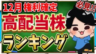 株 12月権利確定高配当株ランキング!! 動画の説明:すっかり肌寒くなってきましたね。今回はいつも定番シリーズ高配当株ランキングです。良い投資ライフが送れるようにいい企業のストックを貯めておくと、ウォーレンバフェットさんの悪材料での投資に役立つかもですね。※以下の企業は前回紹介した... 2026.01.04 株