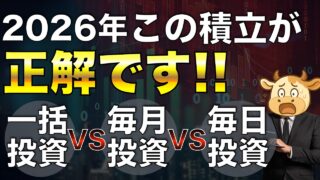 株 【完全決着】2026年新NISAこの投資法が正解!年初一括vs毎月投資vs毎日投資をFANG+でガチ検証。 🎯この動画でわかること右肩上がり前提なら、なぜ理論上は「年初一括」が有利と言われるのか?過去データや研究でわかっている「一括投資 vs 積立投資(ドルコスト)」のリアルな勝率2024〜2025年のような“一括が必ずしも勝たなかった局面”で何... 2026.01.12 株