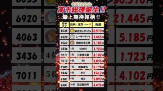 株 最新‼️高市総理で上がる日本株TOP10|半導体 防衛 原子力 インフラ【コード&株価目安】 高市総理の就任で追い風が想定されるセクターを横断半導体 防衛 原子力 通信 データセンター インフラから本命TOP10を厳選本編ではコードと終値ベースの株価目安+一言理由をコンパクトに解説【登場銘柄】東京エレクトロン 8035 レーザーテッ... 2025.10.30 株