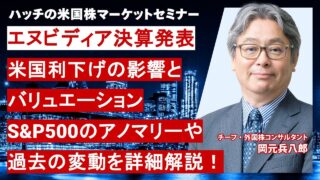 株 エヌビディア決算発表、米国利下げの影響とバリュエーション、S&P500のアノマリーや過去の変動を詳細解説!(ハッチの米国株マーケットセミナー2025年8月) <2025年8月28日(木)開催>▼ハッチの米国株マーケットセミナー(口座保有者限定)※資料のダウンロードは口座保有者限定のリアルタイムセミナーでのみ行えます。<目次>00:00:00 オープニング00:01:48 デイビッド現地レポート0... 2025.11.29 株