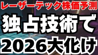 株 【2026株価予測】レーザーテックがラピダス量産開始で株価急騰する理由 【動画概要】レーザーテック株が2025年に8か月で3倍急騰し、12月9日には年初来高値3万3330円を記録。空売りレポートで一時暴落したものの、営業利益率49%という驚異的数字と第1四半期の前年比68%増益が真の競争力を証明。2026年は2... 2026.02.12 株